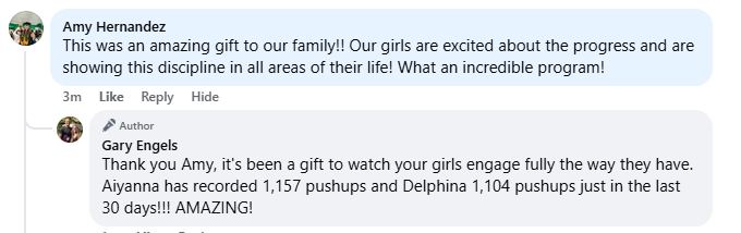 Leadership Academy brings together an incredible balance of fitness, family, friendship, and fun! From the beginning, Mr. and Mrs. Engels have been passionate and patient instructors who genuinely care about the well-being of their students. We've developed confidence and built friendships all while having a whole lot of fun! Thank you for being two of our children’s greatest mentors. They are learning so many life lessons. You are appreciated beyond measure!