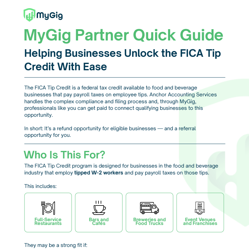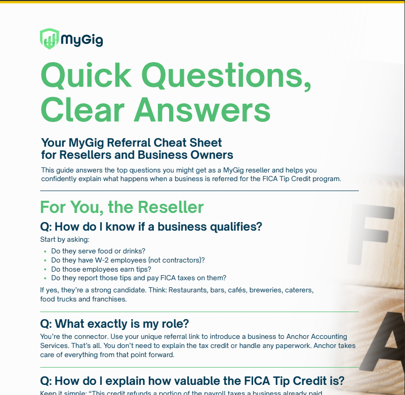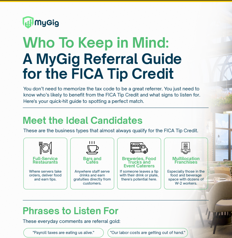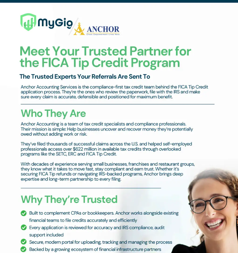 ✅ “I help businesses access vetted services through MyGig, including a program that helps restaurants recover payroll taxes on tipped wages.”