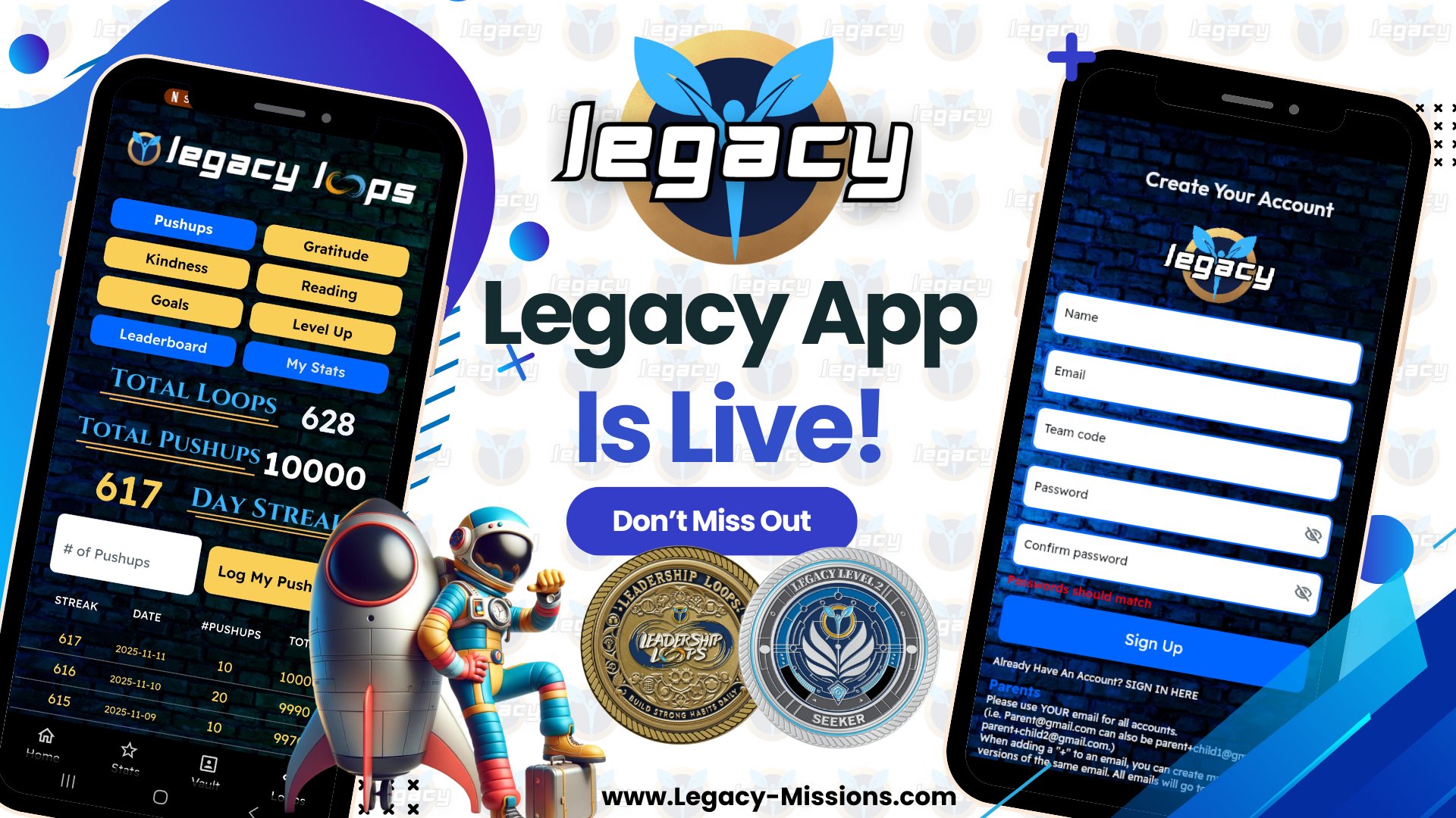 Legacy App is FREE up to 30 Day Streak on Loops and Free up to 300 Legacy Coins! Want more? Choose the Single Access Option for a foundational learning experience, or gain access to Family Access to manage your entire family's Legacy Stats!